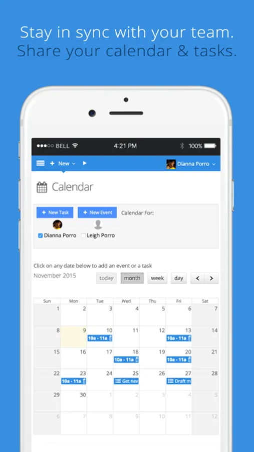 2. View everyone's calendar in 1 click. Sync with Google, Apple, & Outlook.