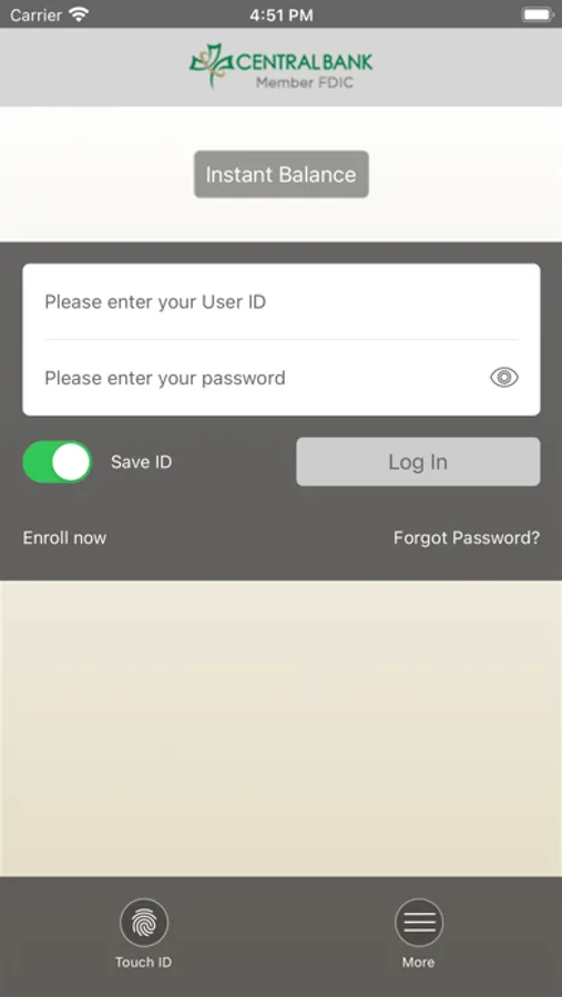 Although Central Bank does not charge a fee for customers to use Mobile Banking, customers must be enrolled in Online Banking and Online Statements, and have a Central Bank Shazam®Chek Card.