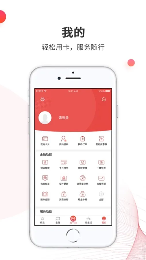 您可通过本人身份证及信用卡查询密码登录客户端,即可享受移动信用卡服务体验。