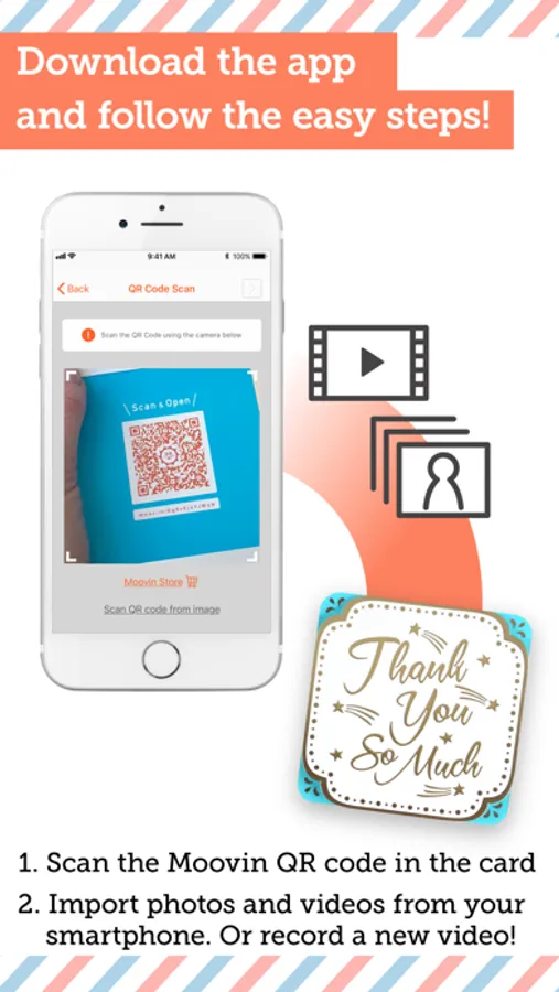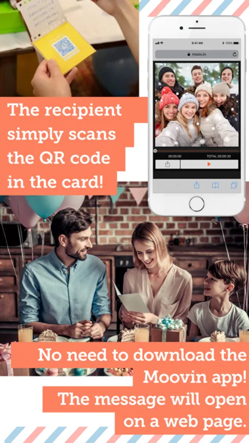 The Moovin App will guide you through the simple process to record, edit and upload your personalised video message to your Moovin card.