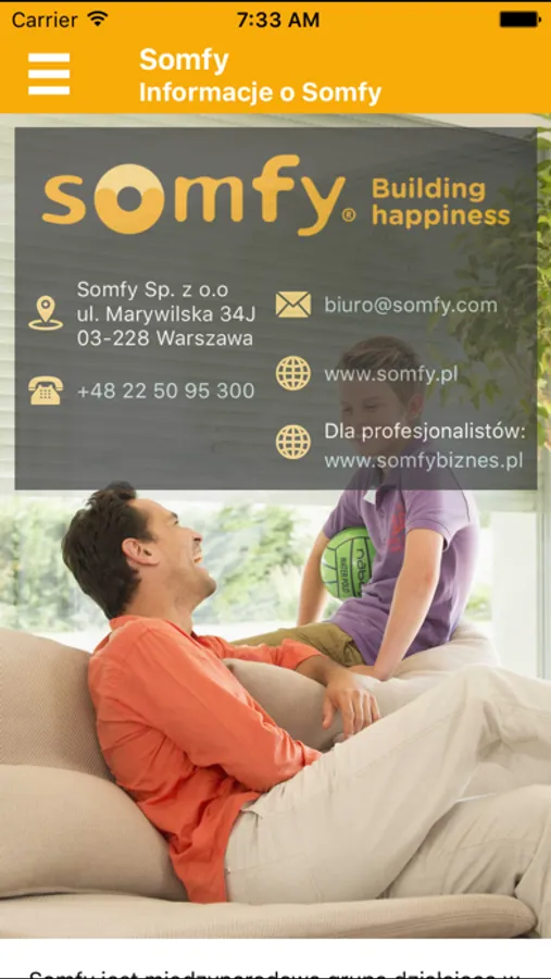 Somfy jest aplikacją w której odnajdziesz instrukcje dla produktów naszej firmy. W łatwy sposób znajdziesz instrukcje dla swojego urządzenia wybierając je z listy urządzeń podzielonych na kategorie.