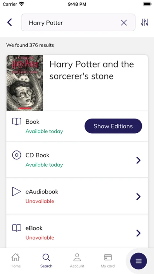 • Search our catalog for physical and digital books, magazines, movies, music and more!