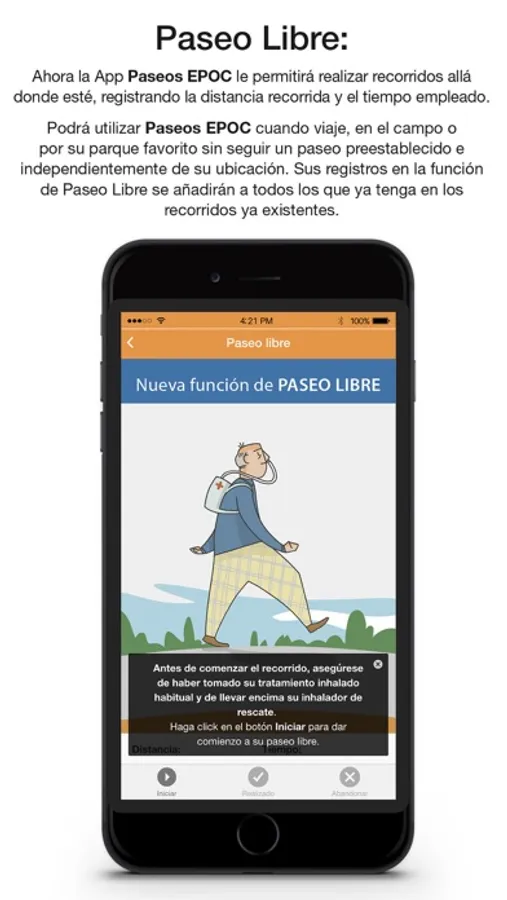 “Paseos EPOC” ofrece al paciente con EPOC (Enfermedad Pulmonar Obstructiva Crónica) la posibilidad de poner en práctica, de una forma reglada y amena, uno de los puntos principales de su tratamiento: la realización de ejercicio físico a través de una serie de recorridos actualizados por por la Comarca de Pamplona y Estella, accediendo a ellos a través del teléfono móvil y llevando un registro que facilita el seguimiento del especialista médico.