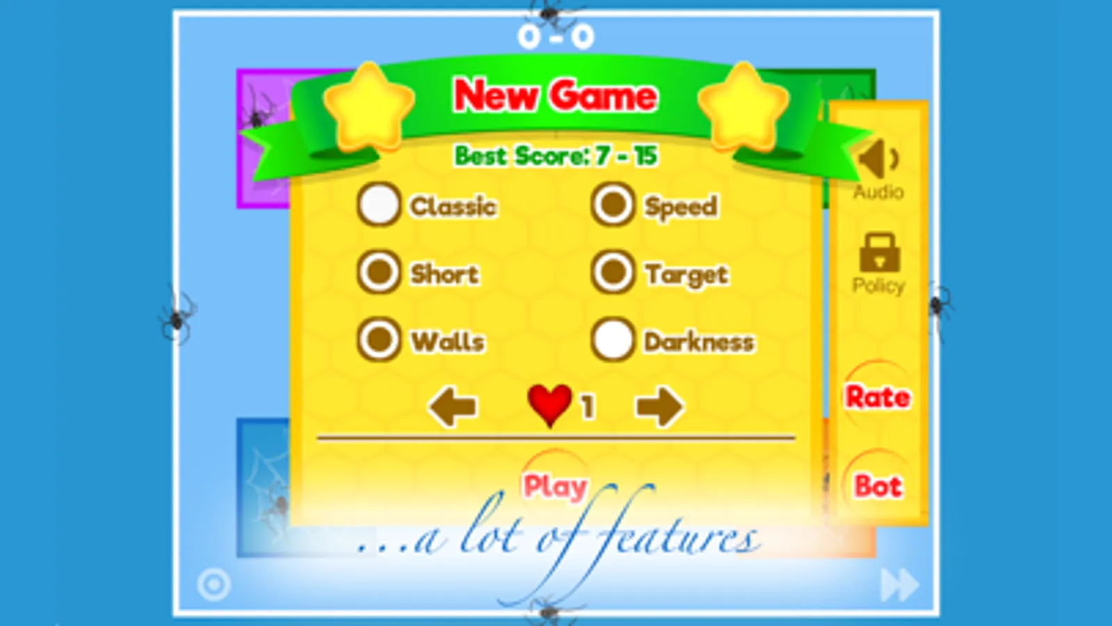The goal of the game is to guide the snake to bring the food home (colour matching). How can it be done? Well, I left it as a simple riddle for you. Just watch carefully where the next food will appear.