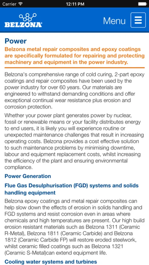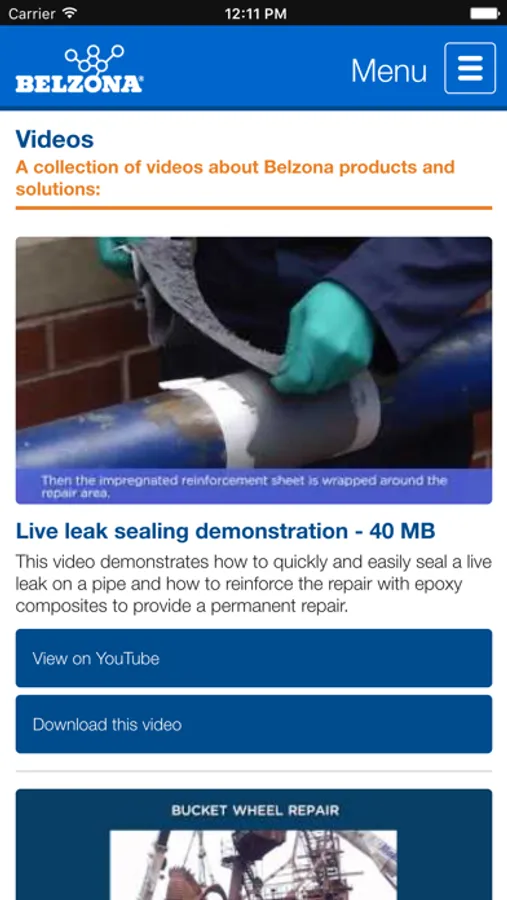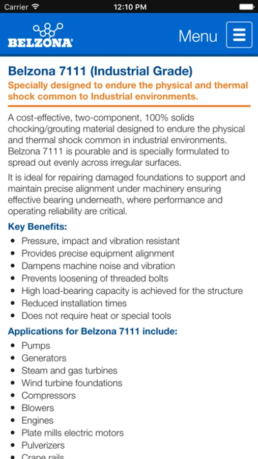 The Belzona app allows users to view information about Belzona products, industries and applications both on and offline. It will allow you to download product documentation and videos so that you can always have them available, whether you have access to the internet or not.