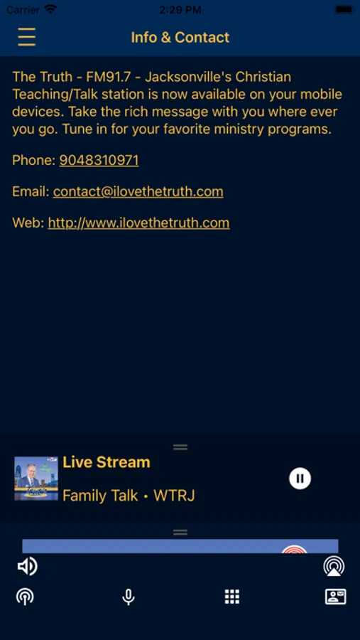 Christian Talk and Teaching format. Featuring some of the greatest foremost bible teachers and religious leaders of our time. Delivering daily inspiring and encouraging practical teachings and messages filled with hope and truth, relevant for everyday life! Providing a platform where listeners can hear nationally syndicated and local bible teachers. The Truth, is a listener supported Christian teaching and talk station fully committed to bringing listeners, The Good News daily 24/7!