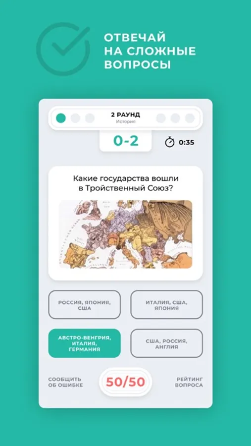 - Турниры! Играйте со своими друзьями в турниры на вылет или до победителя по количеству побед. Можно выбирать только любимые категории вопросов.