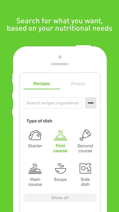 - The most advanced search engine that allows you to find the recipe tailored for you (e.g. single dish, vegetarian, high in protein, low in fat, lactose free, etc.)