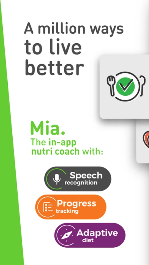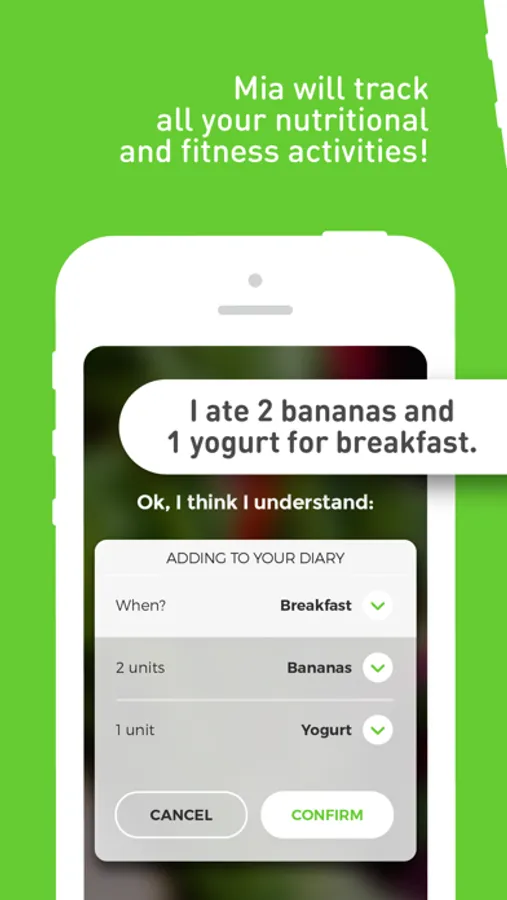 - Mia, the first vocal interaction food tracked and virtual assistant, which helps you follow a correct diet and monitor your meals according to your needs and objectives