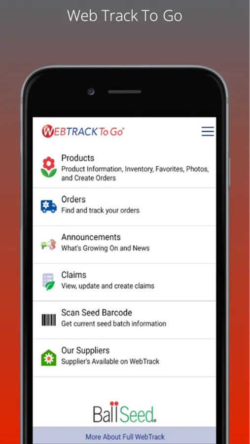 Ball Seed’s WebTrack To Go® is a useful resource for professional growers, university faculty and students, garden communicators and lawn and garden retailers. WebTrack To Go® offers free access to a broad selection of plants, culture information, photos, bench cards and much more. Growers can spend more time in the greenhouse and less time behind a desk by using WebTrack To Go® to see live inventory, order seed and young plants from hundreds of suppliers, manage orders, receive shipment notifications and more. WebTrack To Go® is the companion mobile app for Ball Seed’s full feature WebTrack®.