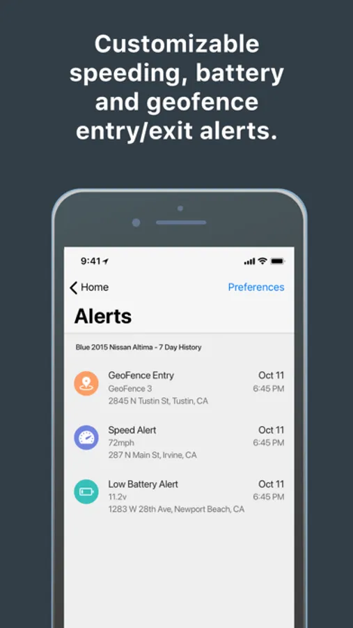 • Speed Alerts – Set a speed limit and get notified when car exceeds a designated safe speed. Great for helping new drivers be safe.
