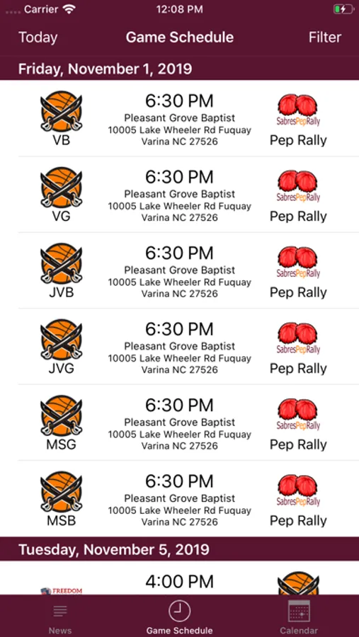- Filter. You can filter the schedule/calendar by team and by home/away. You can choose any or all of the Sabres teams to be in your schedule.