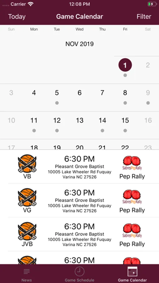 - Calendar. See all games by date on a month view calendar. The same game detail is available for each game by tapping them in the table below the calendar.