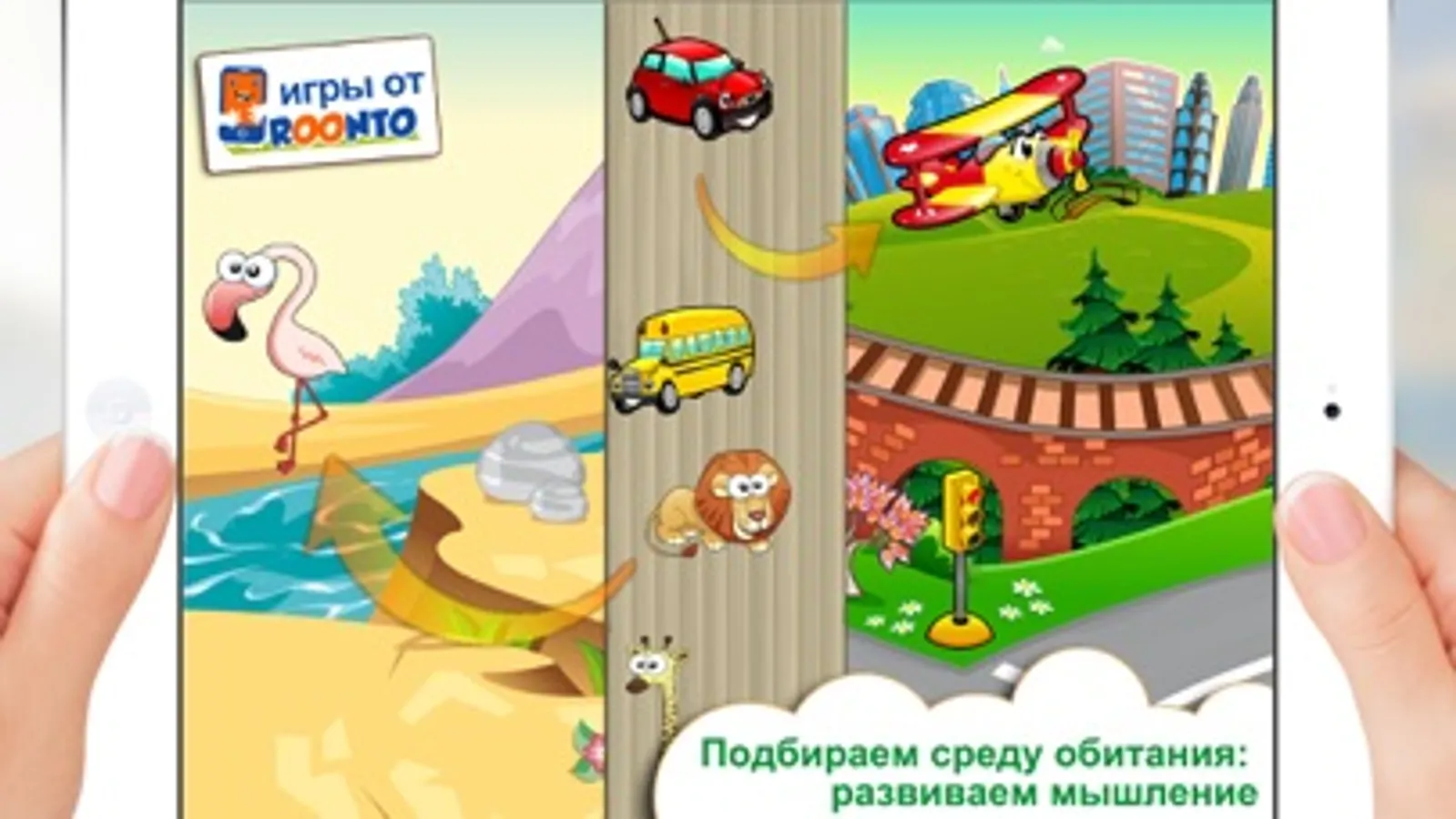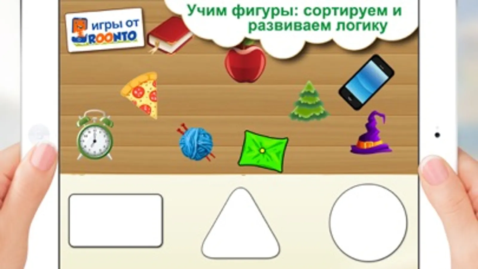 - В игре представлены задачи на сравнение по цвету, форме, размеру и типу объектов.