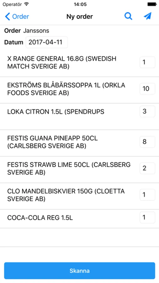 Ange artikelnumret eller skanna in EAN-koden med telefonens kamera.