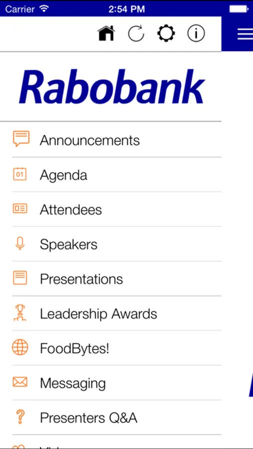 Mobile application for Rabobank Events. It includes, agenda, speaker info and more event-related information.
