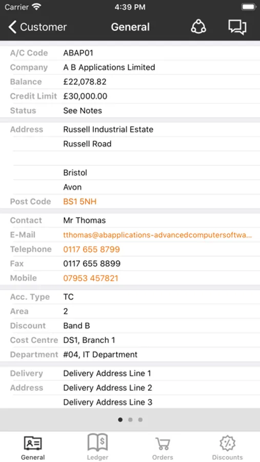 Find yourself on site with a customer and have an account query; no problem simply bring up their account information and view/e-mail a statement or copy invoice; right from your device. With support for full wild-card searching throughout, you will be able to locate and solve your query in a matter of seconds.
