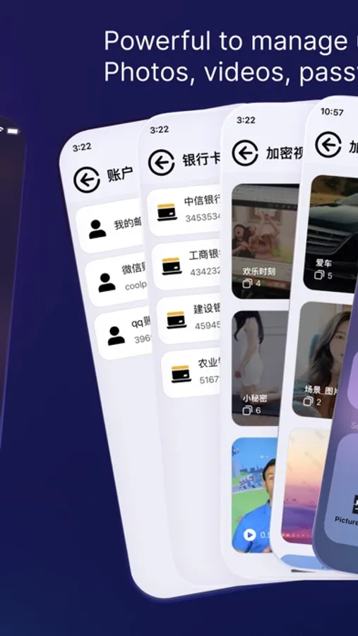 图锁用于安全的管理你的隐私照片、视频、网络账号、写日记、记录隐私信息等,除了你没人能打开。