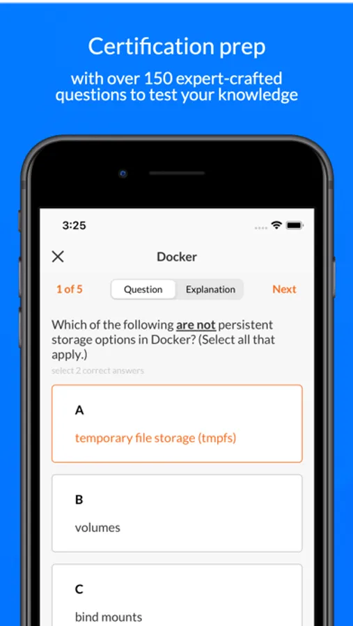 * Certification prep: Prepare for your upcoming AWS, Azure, or GCP certification with over 150 expert-crafted questions designed to test your knowledge on the go.