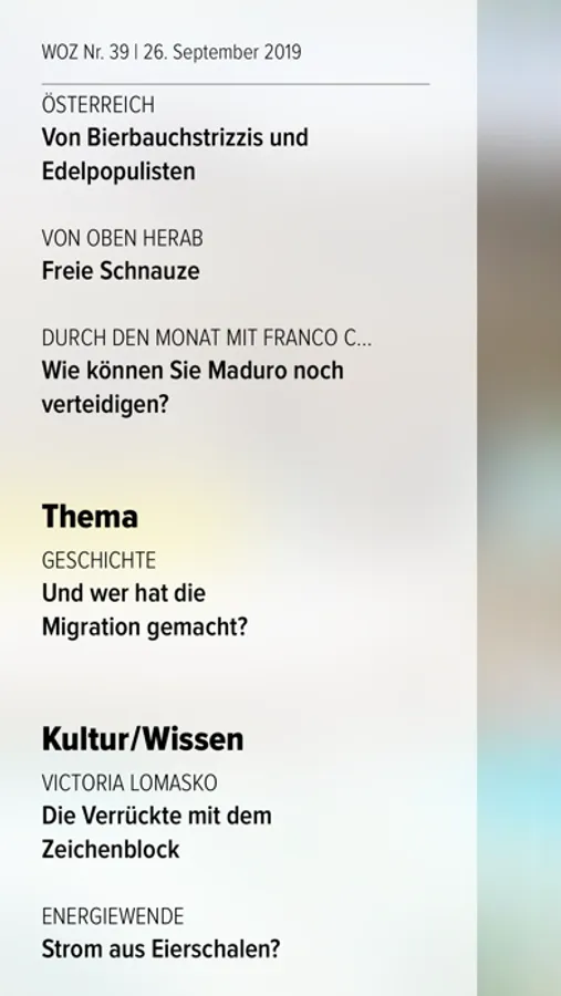 Jede Woche erscheint die neuste Ausgabe automatisch auf Ihrem Smartphone oder Tablet. Neun Ausgaben werden auf dem Gerät gespeichert. Wer auf ältere Ausgaben zugreifen möchte, findet diese auf der Website der WOZ im Archiv.