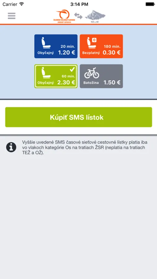 Podrobné informácie o službe SMS lístok nájdete na adrese http://www.slovakrail.sk/sms.