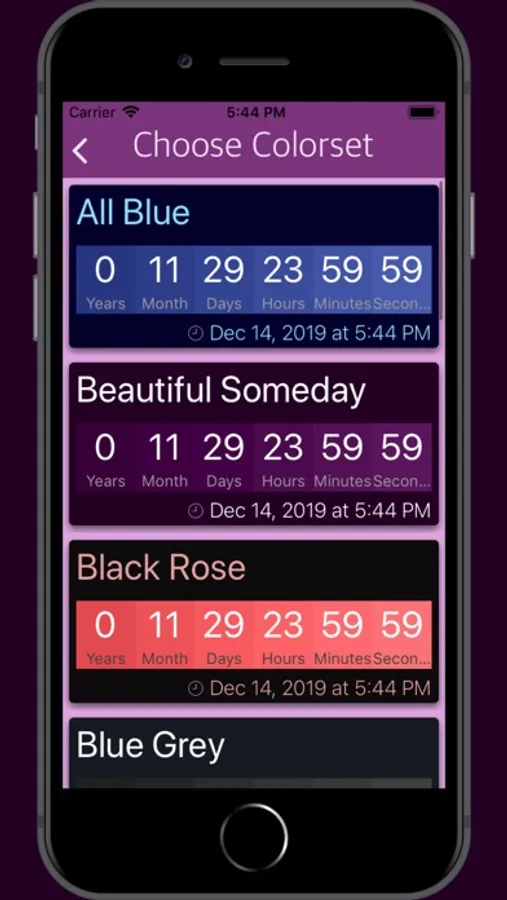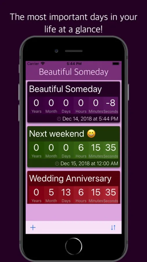 "Beautiful Someday" shows you the remaining or elapsed time for each entry individually in years, months, days, hours, minutes or seconds.
