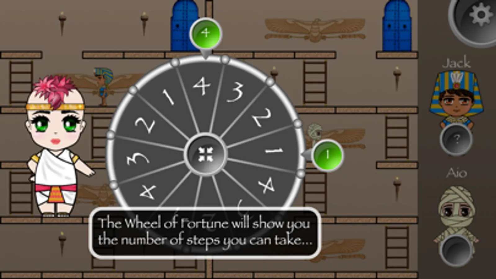 The objective is to reach the last square on the game board before anyone else does. The movement on the board is controlled by the number of steps gained by spinning a wheel-of-fortune.