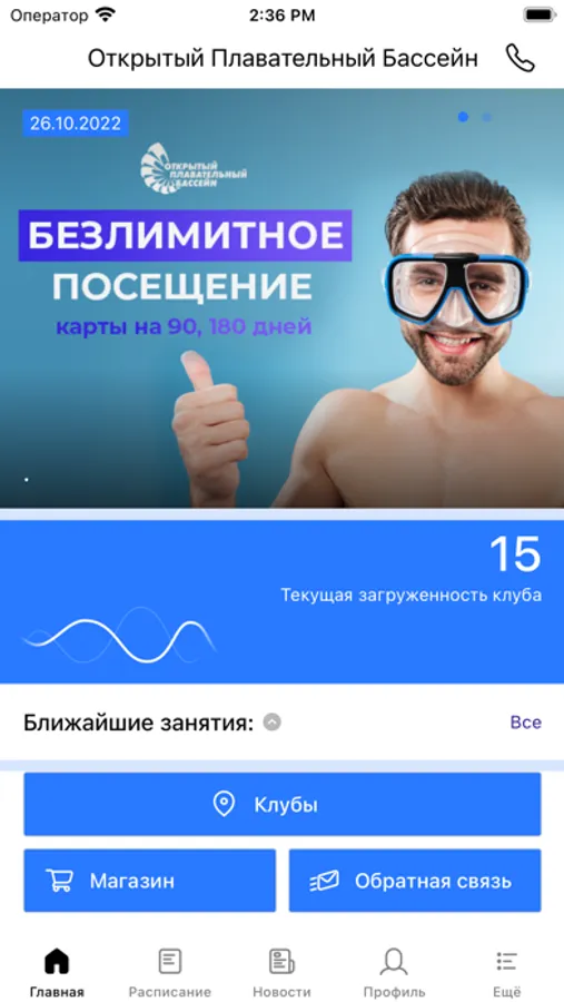 Приложение предназначено для клиентов клуба Наутилус.