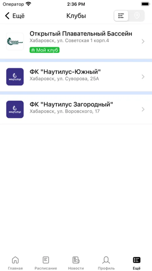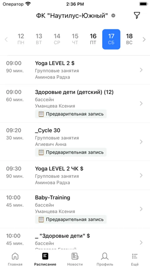 - посмотреть актуальное расписание всех видов занятий клуба