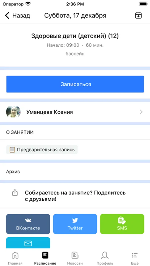 - получать оповещения о предстоящих тренировках и обо всех изменениях;