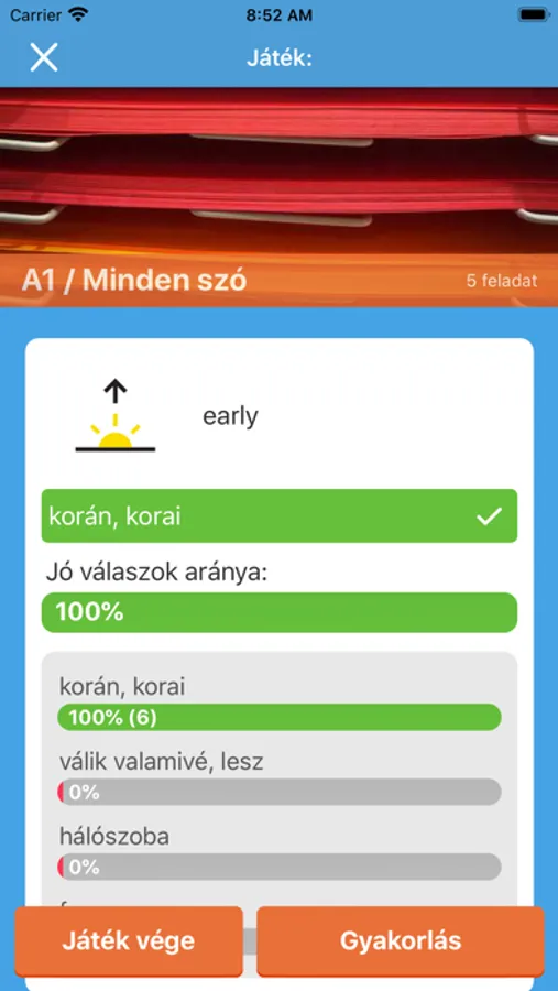 A kikérdezés funkcióval ellenőrizhetjük le, hogy az ismertnek bejelölt szavakat tényleg jól megtanultuk-e.