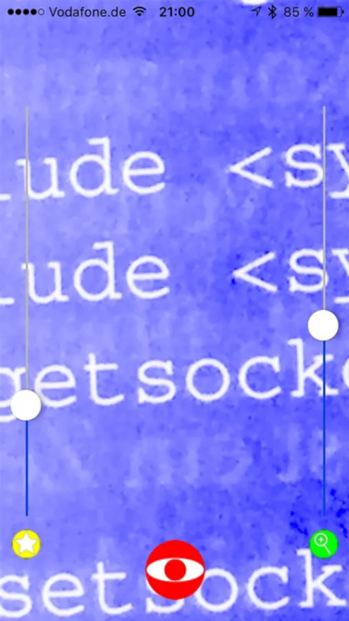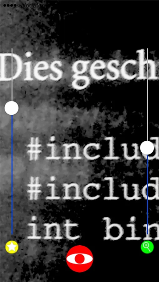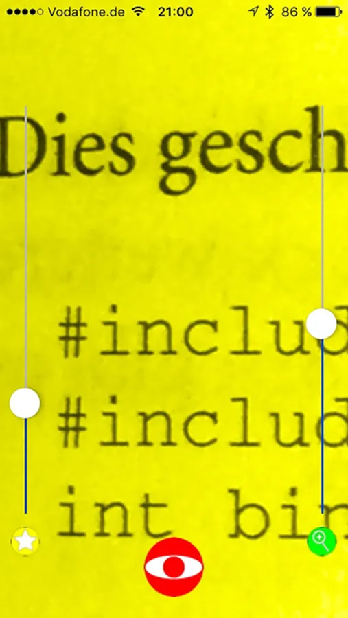 In order to read properly some people require higher contrasts. Therefore Magnifier provides a set of built-in contrast filters which can be cycled using the eye button on the bottom of the screen.