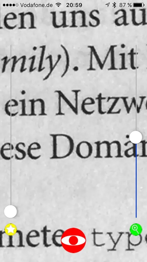 The Magnifier enlarges text up to 48x. Using the slider on the right hand sinde of the display you can quickly adjust the zoom factor. Making Magnifier a great tool for reading magazines, books and documents but also for reading signs and displays on the go.