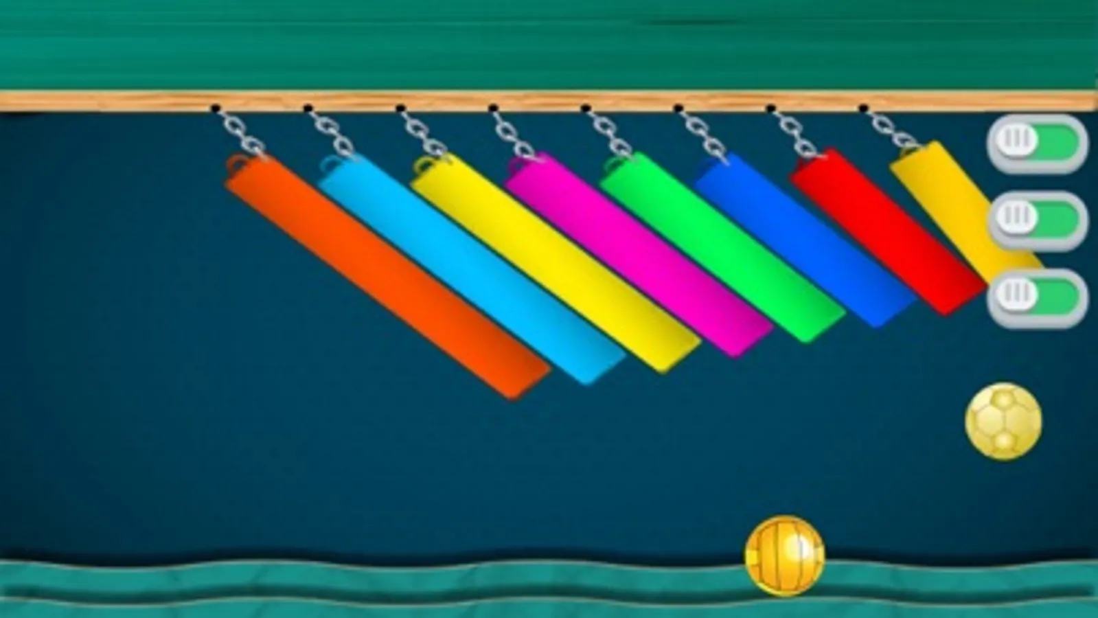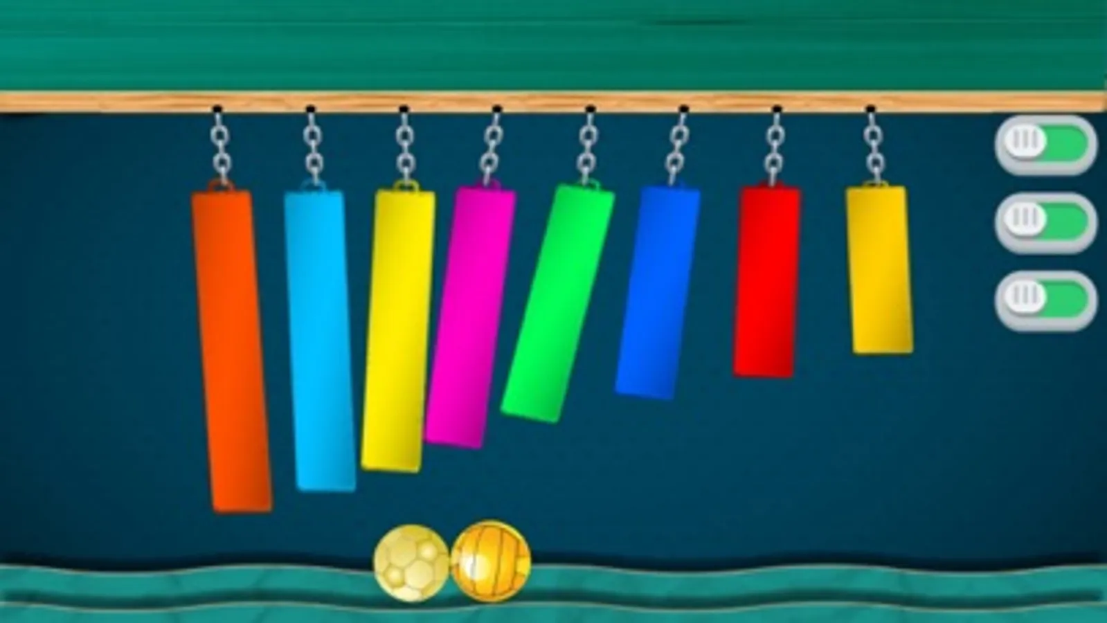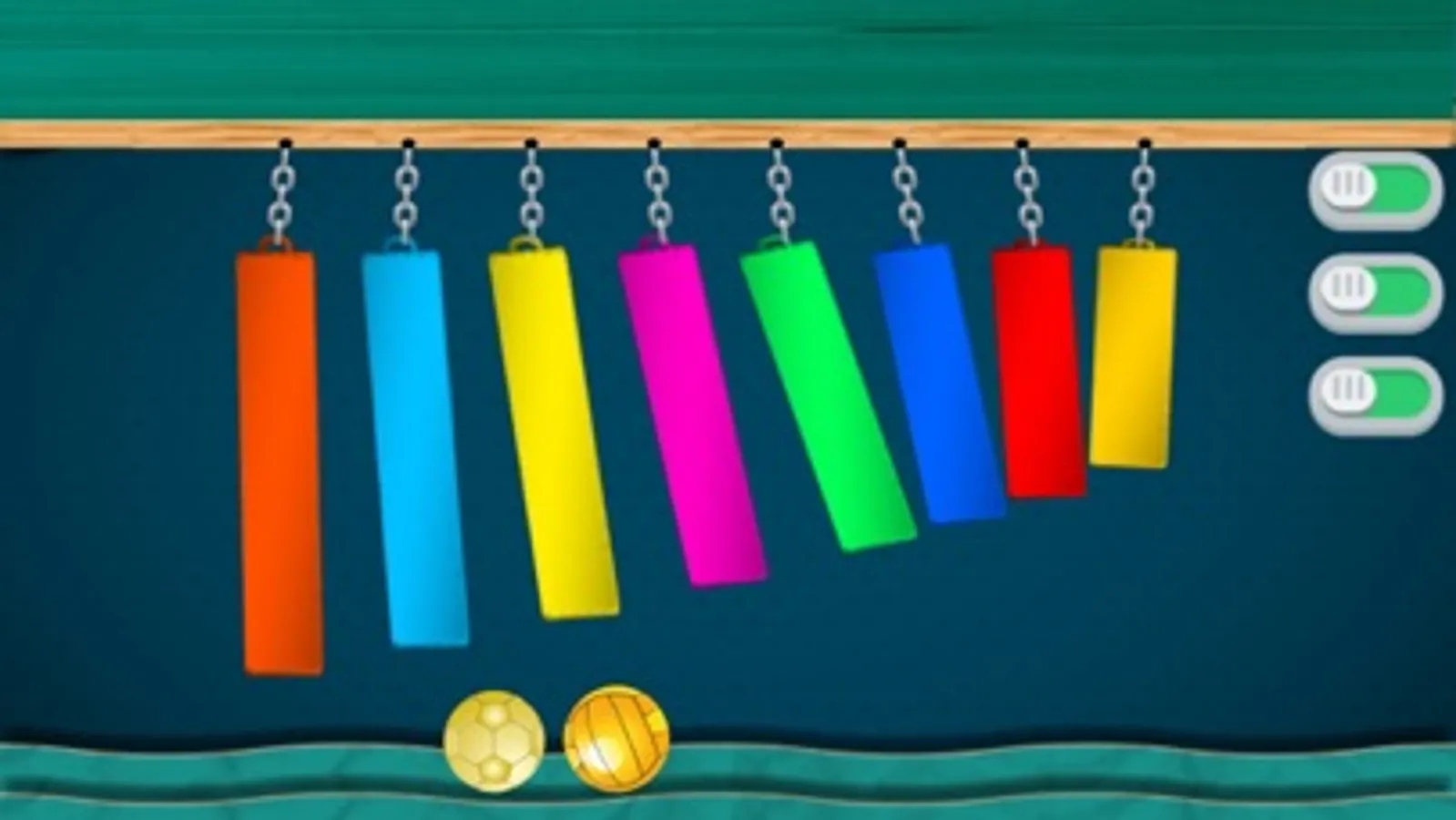 This xylophone is very different and funny. The notes are swinging on a chain. You can use real world gravity. If you like bouncing balls you are at the right place. There are two balls for kicking the notes.