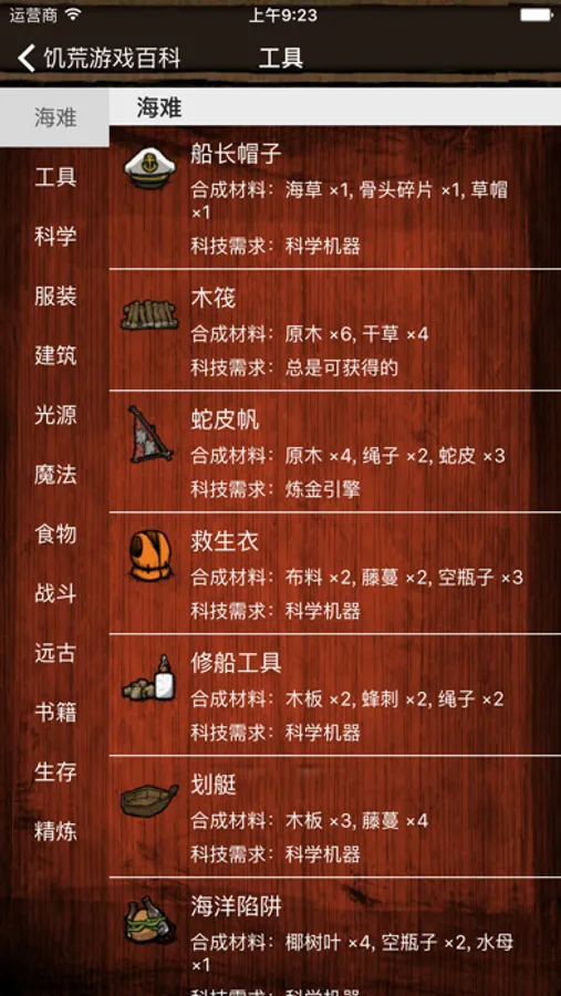 一款基于饥荒游戏做的百科,详细的介绍了饥荒游戏世界中出现的各种事物,如生物的属性和掉落,植物的产出和作用,工具的制作和功能,建造的材料和作用,以及游戏中的各种奇遇等。