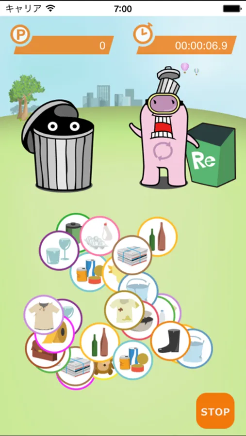家庭ごみと資源ごみを手早く的確に分別するゲームです。