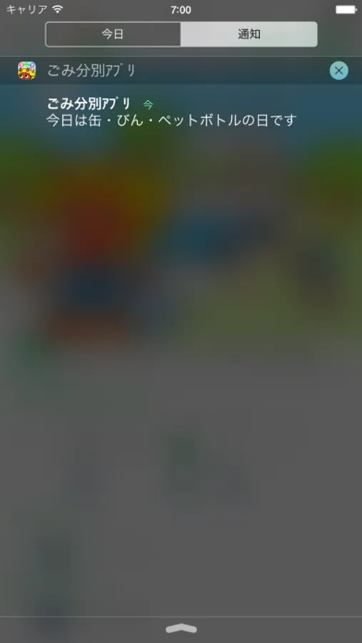ごみの収集日をアラートでお知らせします。お知らせする時刻は当日または前日の範囲で自由に設定することができます。