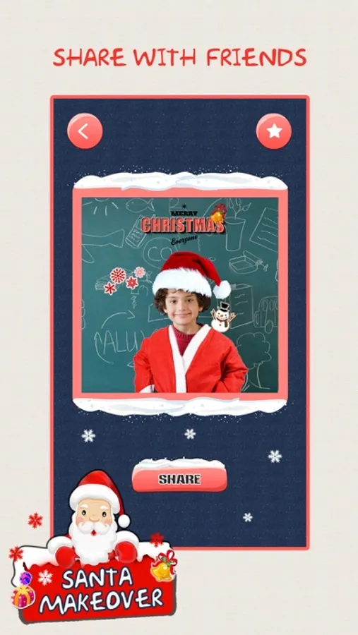 Christmas Makeover turns yourself into Santa Claus. It provides lots of Christmas photos(hat, mustache, costume, etc) to stick on your pictures and many edit tools to use. You can make really funny pics and share instantly with your friends!