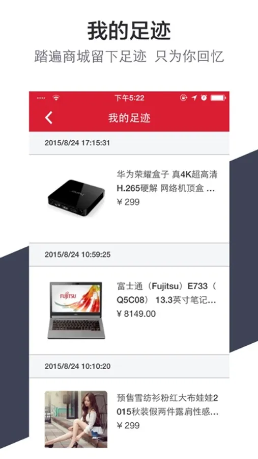 我的足迹:你踏遍商城商品,我们也要把你记录留下来,只为你方便回忆...