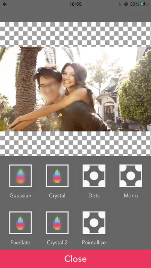 Size :Pinch mosaic/blur area directory or screen using with two fingers.