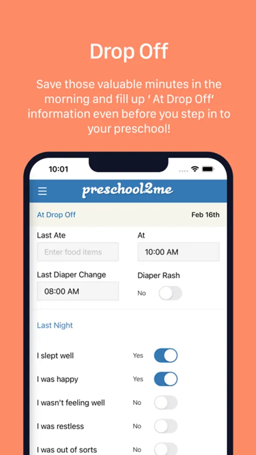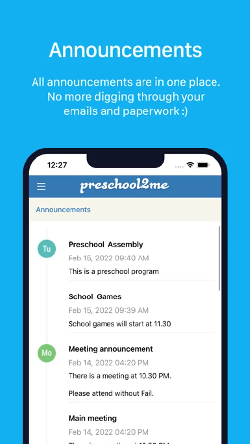 Preschool2me Parent Pro makes it easy for parents to view their child’s pictures, activity reports, announcements sent from the preschool. Parents can even communicate with the preschool by sending At Drop Off and Absence information. No more viewing information just via email. Enjoy the ease of viewing everything you want to know about your child’s day right at your fingertip!