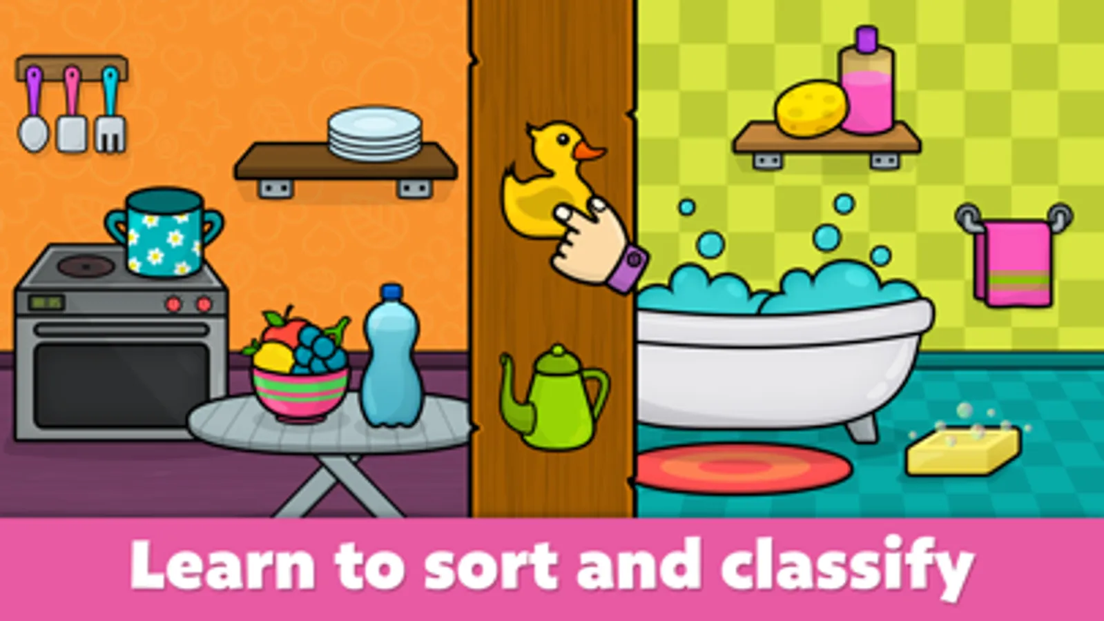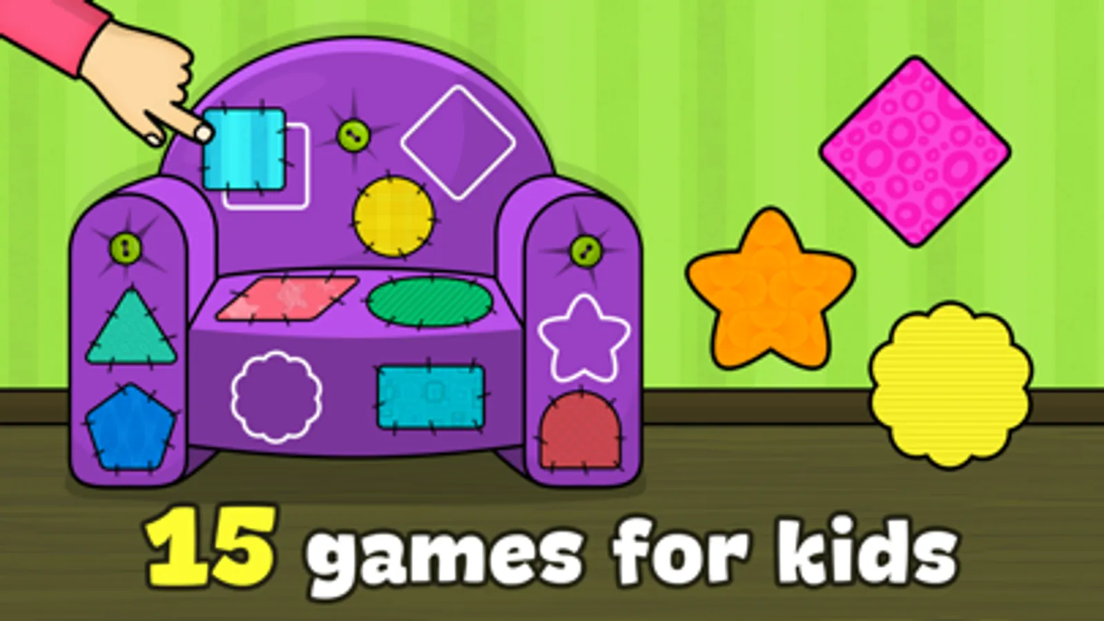 15 different games will fascinate a child with not only bright colors and funny animations, but also with interesting and clear tasks such as: