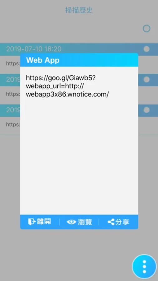 提供掃描後直接前往瀏覽搜尋、或透過其他APP 如 LINE SKYPE WECHAT ....分享。