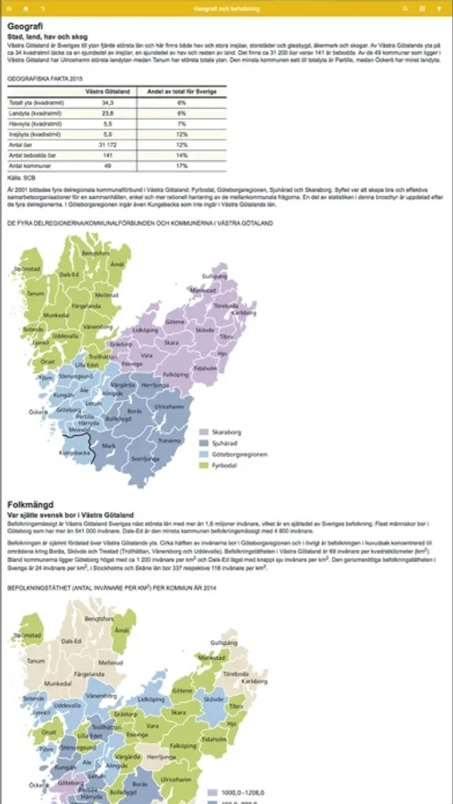 Fakta och statistik om Västra Götalands 49 kommuner, om hela länet och om de fyra kommunalförbundsområdena. Jämförelser med andra län och regioner både i Sverige och i Europa. Illustreras med diagram, kartor och tabeller.