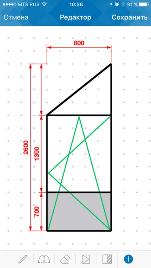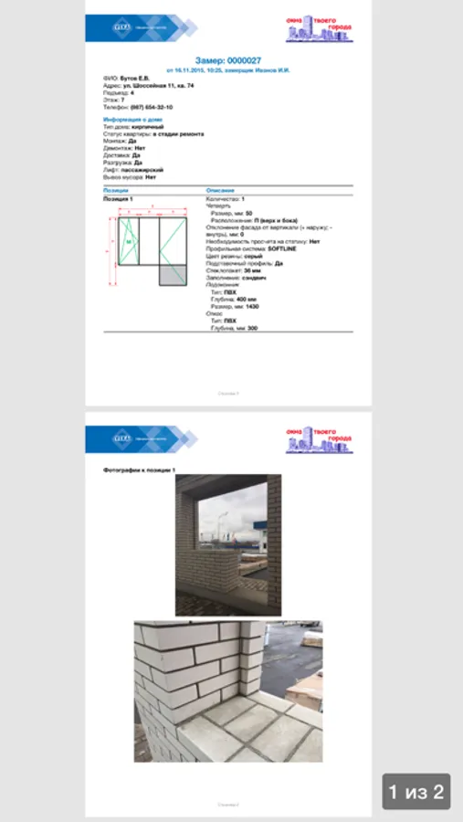 Приложение позволяет оформить замер светопрозрачных конструкций и отправить его в офис по E-mail.