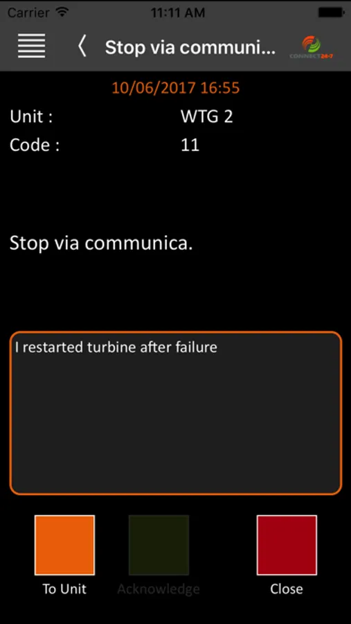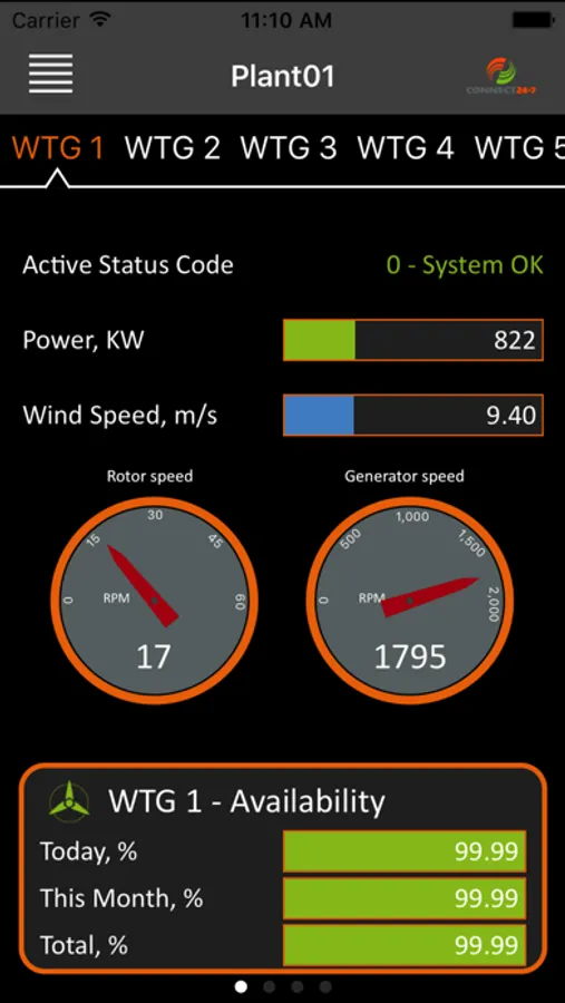 CONNECT 24•7 app is an addition to CONNECT247 which is Connected Wind Services web based wind turbine SCADA solution. The app enables you to connect to turbines or wind parks and monitor production, availability, alarms, weather conditions and more. It provides instantly online access to wind turbines thus reacting to alarms and changing conditions.