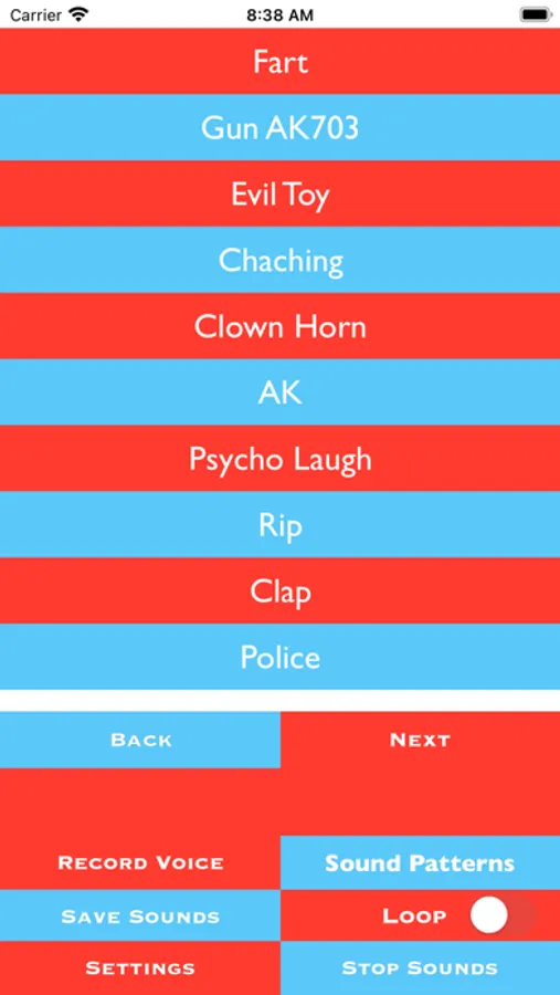 - Funny Voices, Laughs,Animals, Alarms, Weapons,