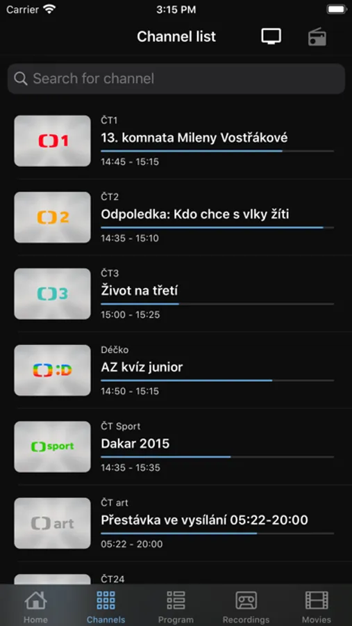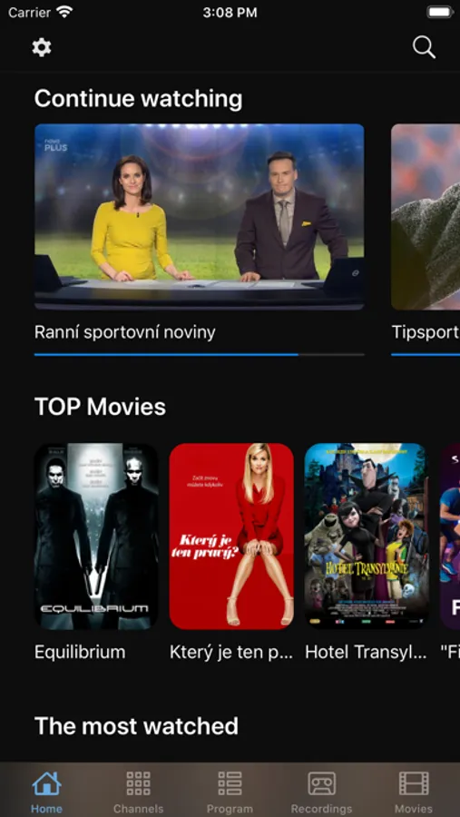 Pro příjem televize je třeba internetové připojení o rychlosti cca 1,2Mbit/s.