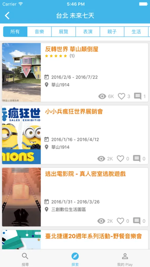 ※ 隨選每日活動、未來七日活動、本月活動,只獻給您好棒棒的約會提案,一鍵輕鬆探索!