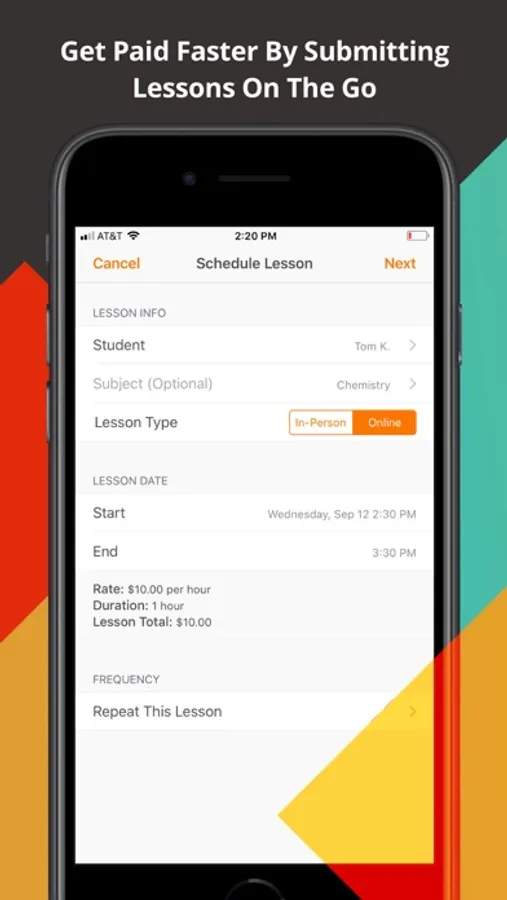 - Submit lessons from your phone to get paid faster